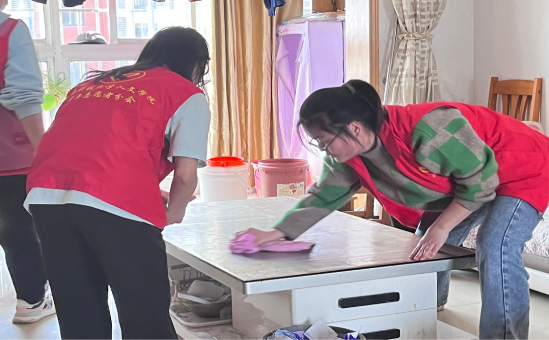 KY.COM学生志愿者帮助行动不便老人打扫卫生