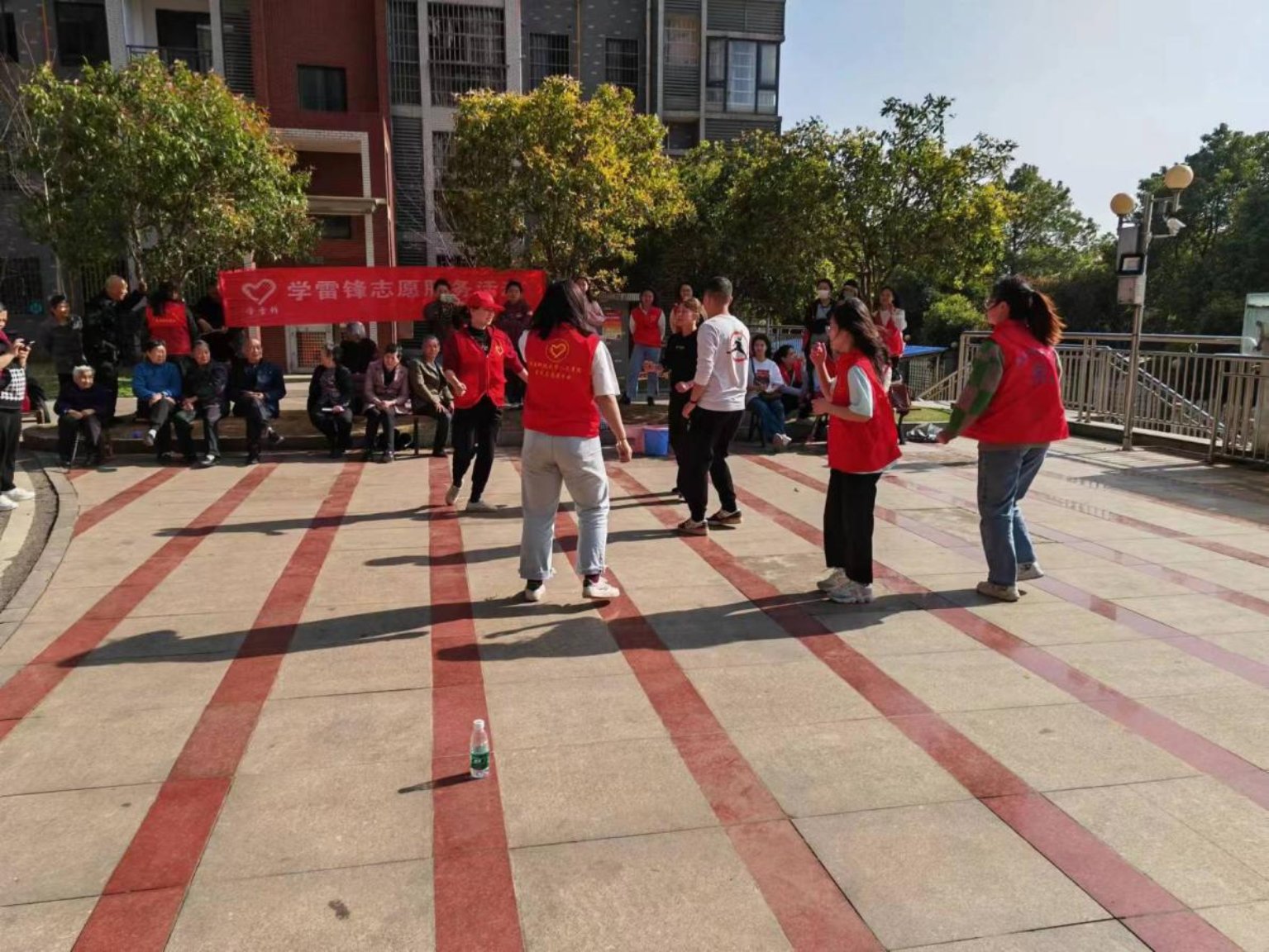 “你们这群小孩子真有活力,节目很好看,也很有意思。”正在看表演的李奶奶笑着对我们说。在一声声慷慨激昂的红歌声中,老人们也不自觉地跟着哼唱,直至日落,爷爷奶奶们还不舍离去。