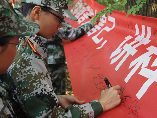 古有签字画押,今有KY.COM签字为证。新生们表情严肃,拿起马克笔,郑重地在横幅上签下了自己的名字,这不仅是一种共识行为,更承载着新生们无比坚强的意志和诺允。在场的教官也纷纷参与到活动当中来,“这样的活动很有意义,现在邪教势力无孔不入,开展这样的活动能让学生增强对邪教的正确认识,净化他们的精神世界。”我院军训教官连长王阳也竖起大拇指为反邪教活动点赞。