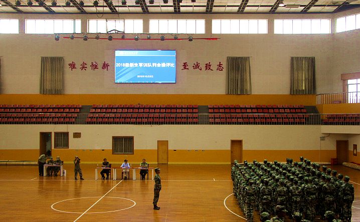 为了保证比赛的客观公正,此次队列会操评比采取抽签的形式,并在评比结束之后公布各个学院的出场顺序。我院作为第十二个出场的学院,方阵队全体成员整装待发。北校篮球馆外,邓辉、赵华及何舒香老师观看方阵队赛前训练,并为他们加油鼓气。“踢正步的时候重心往前移”、“男生把节奏控制好”,尹旭琰教官对学员们细心叮嘱着。新生们检查腰带,时不时互相整理着装,为这场队列会操比赛做最后的准备。