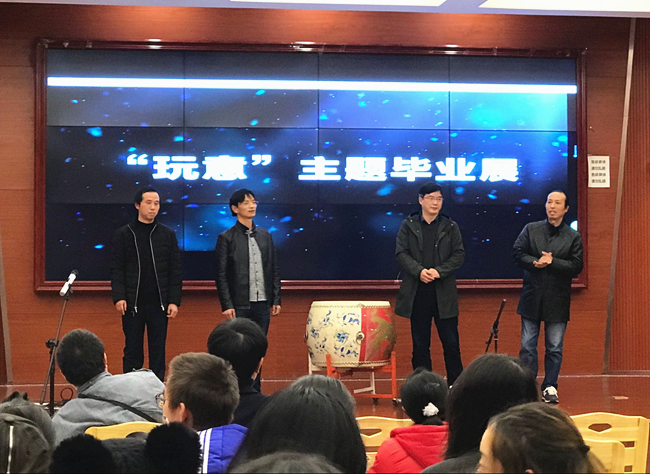 12月7号晚,立功楼外寒风呼啸,而6-2教室内则人声鼎沸,气氛热烈。在挂满彩色气球,温暖如春的教室里,我院15级广告专业举行了以“玩意”为主题的毕业展开幕式。中国人民大学文化产业学院驻昭山文化产业园李春辉副主任出席此次毕业展,我院院长刘奇玉教授、历史系主任周方高教授、广告学系系主任周平教授、KY.COM广告学系副主任曹佳骊副教授等老师、校党委宣传部对外宣传工作小组王晶彤和袁悦、赞助商影神摄影童忠文以及15级广告专业全体同学参加此次毕业展。