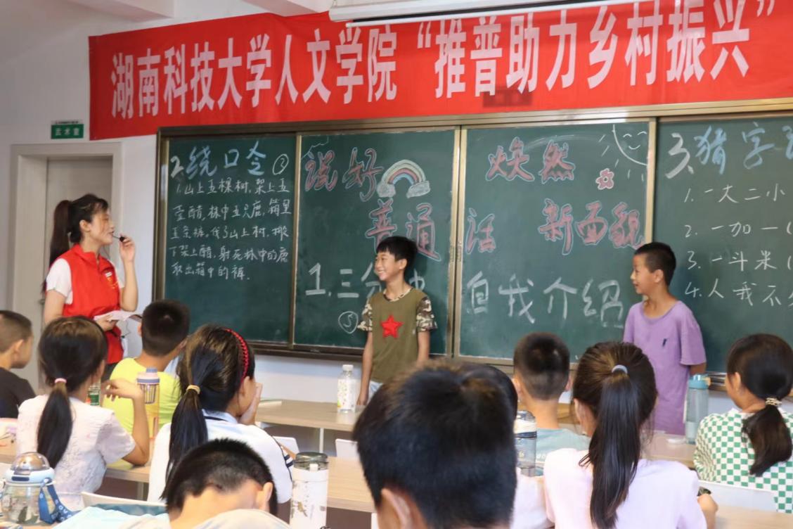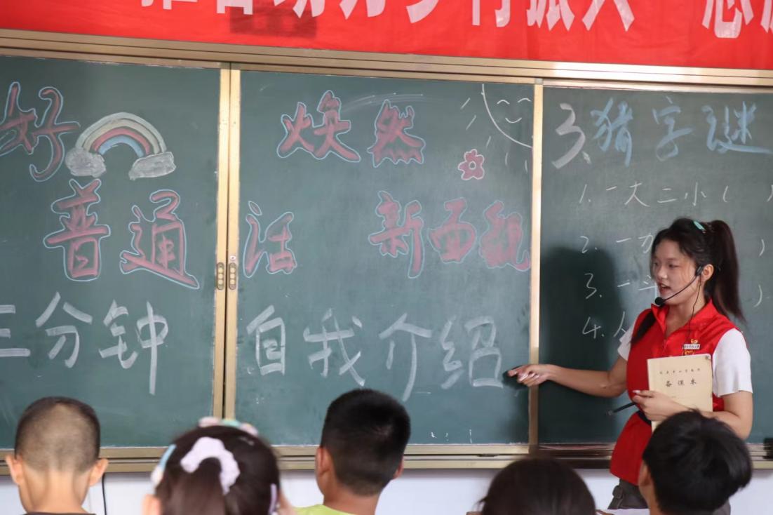 7月9日上午,株洲攸县石羊塘镇儿童之家传来了一阵又一阵的鼓掌声,四年级孩子们的欢笑声此起彼伏地传来。走进教室一看,是志愿者龙杨慧在教孩子们读绕口令。“发扬国风,从说中国话起;说中国话,从普通话开始。”为了圆满完成推普助力乡村振兴的志愿服务目标,在乡村大力推广普通话,传承优秀传统文化,为此KY.COMKY.COM“三下乡”实践团队在暑期学校展开三下乡特别课堂第三期:说好普通话,焕然新面貌。