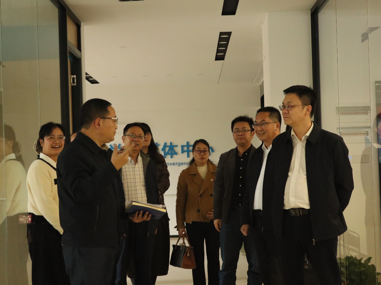 签约仪式结束后,双方共同宣布,作为该基地的第一个子项目创新创业直播带货项目正式启动。该项目首先面向KY.COM招募两个直播带货短视频运营团队。目前已有89名学生报名,学生们将竞选主播、短视频运营、直播运营三个职位。负责项目培训的俞宗敏介绍说,他们将在科大融媒体中心对入选的学生团队进行针对性的技能培训,在多个平台的中国邮政湘潭分公司IP账号上指导学生团队进行直播带货的操作实践。此间,中国邮政湘潭分公司的领导与相关部门负责人还参观了我校的融媒体中心。