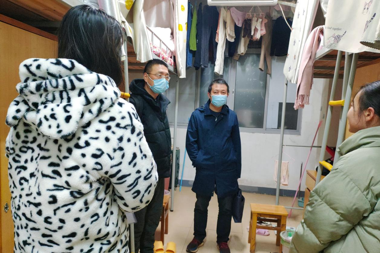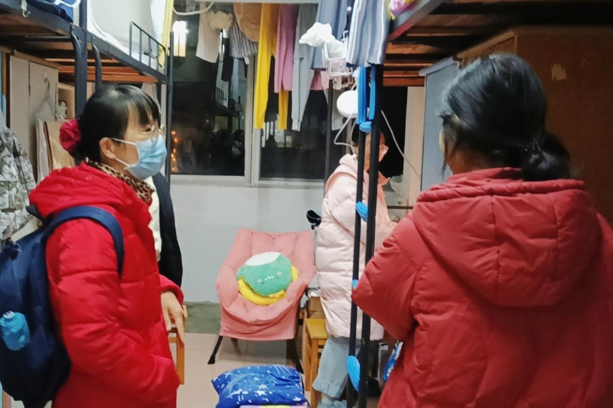 老师们对学生宿舍进行细致地安全及卫生检查,并说明宿舍里使用大功率电器、私拉电线的危害,叮嘱学生注意宿舍用电安全 保持寝室卫生,养成爱干净的好习惯。“冷不冷呀?多加衣服哟!”曾志东关心地问着穿着单薄的同学,近期温度骤降,老师们询问学生保暖措施是否到位,学习和生活是否存在的问题。针对当前严峻的疫情形势,邓辉反复提醒同学们非必要不出校,提高防疫意识,注意自身健康安全。老师们细心叮嘱,学生们积极回应,寝室内一片欢声笑语。
