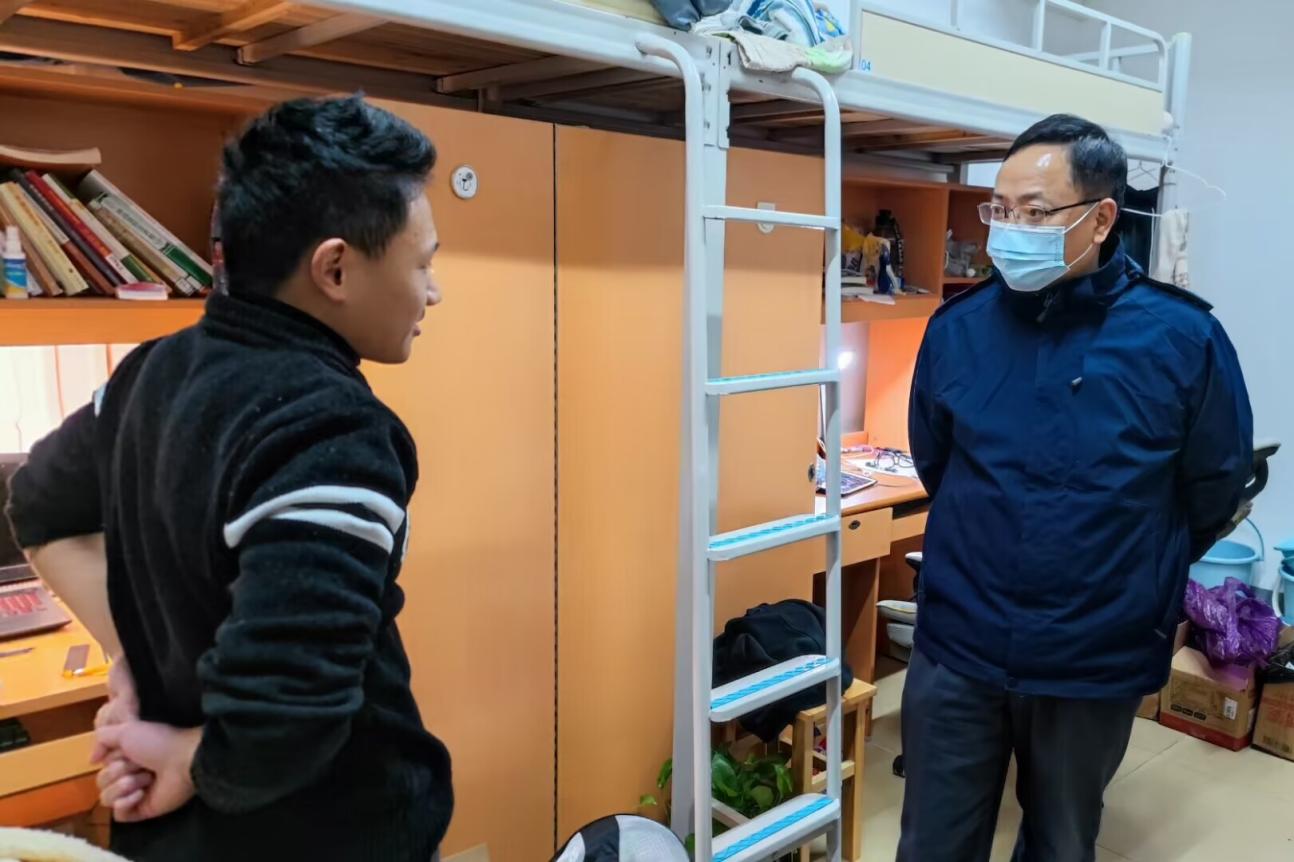 为进一步提高我院学生防疫与宿舍用电安全意识,12月1日晚,我院党委书记曾志东的带领全院领导、全体辅导员及各班班主任前往宿舍看望,与同学们们面对面交流。