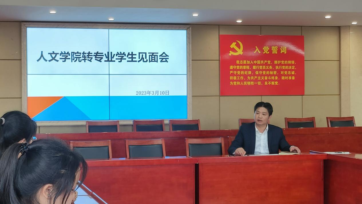 为帮助转专业学生尽快适应新专业学习生活,合理规划大学职业生涯,3月10日下午,我院在立言楼4-1召开2022级转专业学生见面会。会议由院党委副书记罗振军主持,2022级辅导员及58名转专业学生参加了见面会。