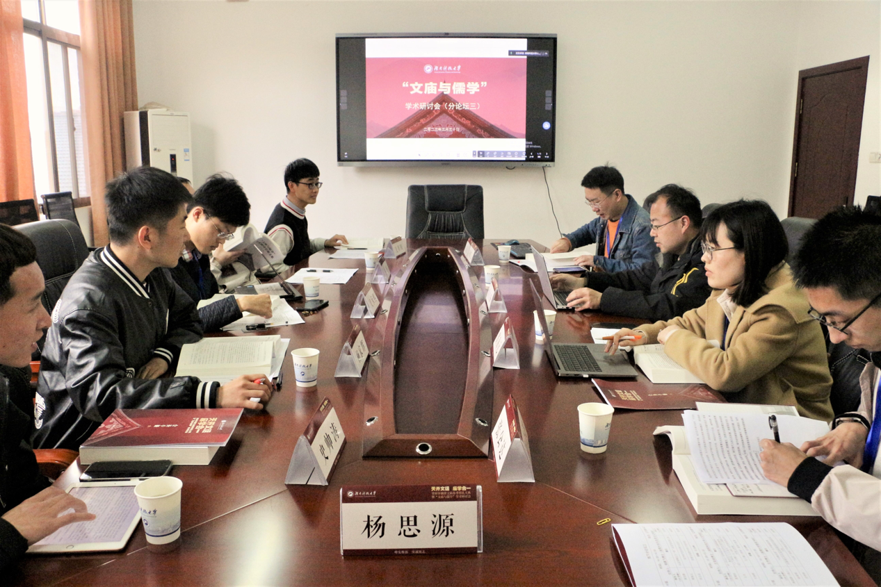 来自华中师范大学的窦海元分享了自己以“庙学研究的历程与走向”为题的论文。她指出,对庙学的研究既要有广度更要有深度,如果只针对某一历史时期的庙学发展情况和某几所庙学的发展情况进行说明,很可能存在认识的片面或者对概念解读出现误解。她结合著名台湾庙学代表研究学者郑志明的著作和观点,重点强调研究中国传统教育的实质必须注重庙学在教育历史上发挥的重要作用。杨家辉随即对她的发言进行了评论:“窦博士的文章结构严整,安排合理,既有时间上的先后顺序,也充分展现了近四十年来庙学研究不断深入、层层递进的发展特点且证言充分,表格、文献丰富。”在我院代表老师的主持下,经过三个多小时的交流讨论,“文庙与儒学”学术研讨会分会圆满结束。