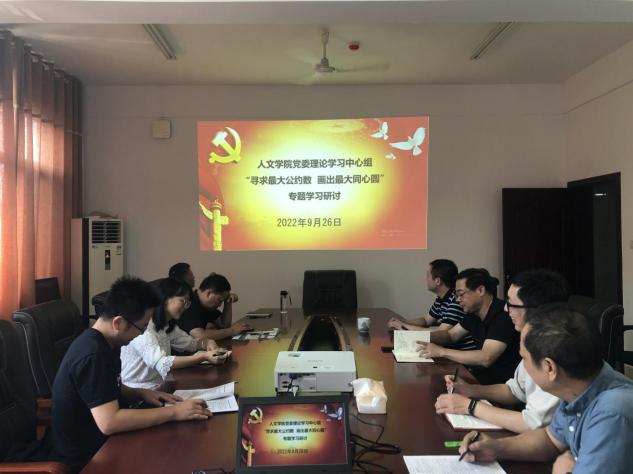 2022年9月26日,KY.COM学院党委理论学习中心组在立言楼B505室开展“寻求最大公约数 画出最大同心圆”专题集中学习,集中学习由曾志东书记主持,全体党委委员和党政办负责同志参加了本次集中学习。