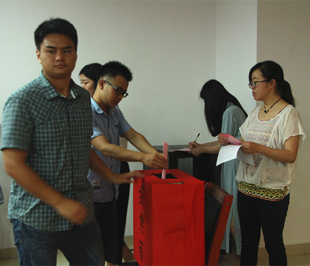 讲话结束,工作人员宣读《大会选举办法》(草案),监票人宣读检票人建议名单及校党委组织部关于KY.COM党委换届候选人预备人选的通知,“各位党员,对监票人建议名单有什么意见请发表!同意的请举手,请放下!”廖加林说道,场下党员一齐举手,对监票人建议名单,表示同意,无投否定票及弃权票,一致通过。工作人员下发好选票后,全体党员认真填写选票,依次排队上台将选票投入投票箱。
