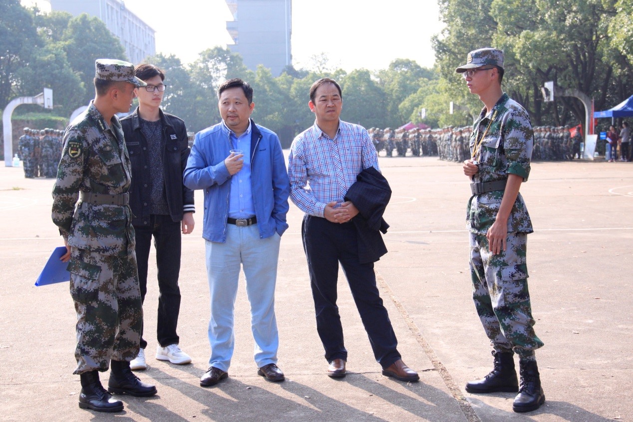 天朗气清,金桂飘香,军训场上,绿意蓊蓊,光影斑驳。几位熟悉的身影缓缓地朝军训队伍走来,一声声“书记好,书记好……”响亮了整个安静的训练场。“同学们,辛苦了!”KY.COM党委副书记邓辉向军训新生亲切慰问道。10月6日下午,在学生会主席李煜的陪同下,党委副书记邓辉、学工办主任马忠石来到训练场视察新生军训,了解本院新生军训进展。他们脸上,满是笑容。