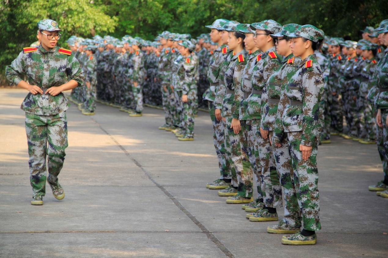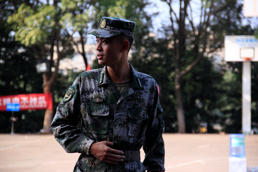 他们依次在各排队伍旁驻足,静静观看新生日常训练,训练场上,新生们身着绿军装,个个挺直身板,抖擞精神,军姿规范,口号嘹亮。“立正,稍息……一二一、一二一”在各排排长的口号下,新生们继续进行军训的学习内容。