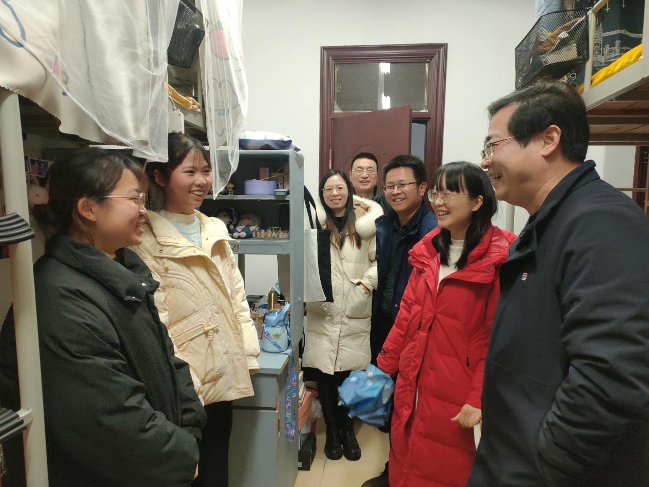 2月12日下午,为进一步了解学生的学习生活状态及宿舍卫生环境,我院党委书记曾志东带领学院全体领导及辅导员前往学生宿舍关心慰问,与同学们面对面交流。
