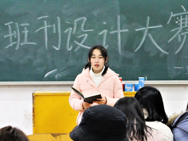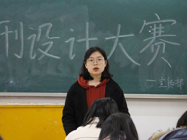 “各班自主设计的班级刊物应体现出专业特色,打造出各班级的个性亮点,同时有效弘扬正能量,展现当代大学生青春向上的风采风貌”。邬敏说道,她详细介绍了班刊设计与大赛的具体流程,主题和活动安排等。同时,宣传部人员发放了往届优秀的班刊作品以供各班作参考。随后,16级新闻一班黄姗姗作为往届优秀班刊制作者受邀上台介绍班刊制作经验。“我们班班刊起名为《问》,谐音‘新闻’的‘闻’。”黄姗姗首先介绍了班刊名的选定,随后,她从目录的制作及内容的选择等方面分享了班刊的制作过程。她建议,各班在制作班刊时的排版要尽量简洁明了,字数与页数可根据各班特色决定,尽量将班刊电子版导出为PDF格式,再拷贝到U盘中,以便于决赛展示。