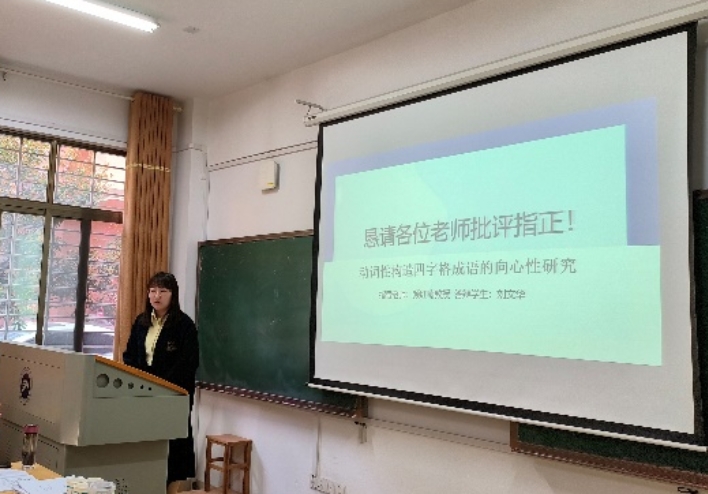 预答辩开始前,李康澄教授简要介绍了答辩流程,并督促同学们抓紧时间修改自己的毕业论文,会后及时与各自导师沟通并完成终稿。会上,刘文华、郭艳梅、高琦、唐顺昕、曾惠中、毛桂六名报告人依次向各位老师汇报了毕业论文的创新和不足之处。她们的论文题目分别为“动词性构造四字格成语的向心性研究”“邵阳(市区)方言俗语言研究”“‘V(P)这个V(P)那个’结构的语义语用研究”“湘潭方言词汇研究”“‘V了个寂寞’构式研究”“汉藏语系量词重叠的类型学研究”。
