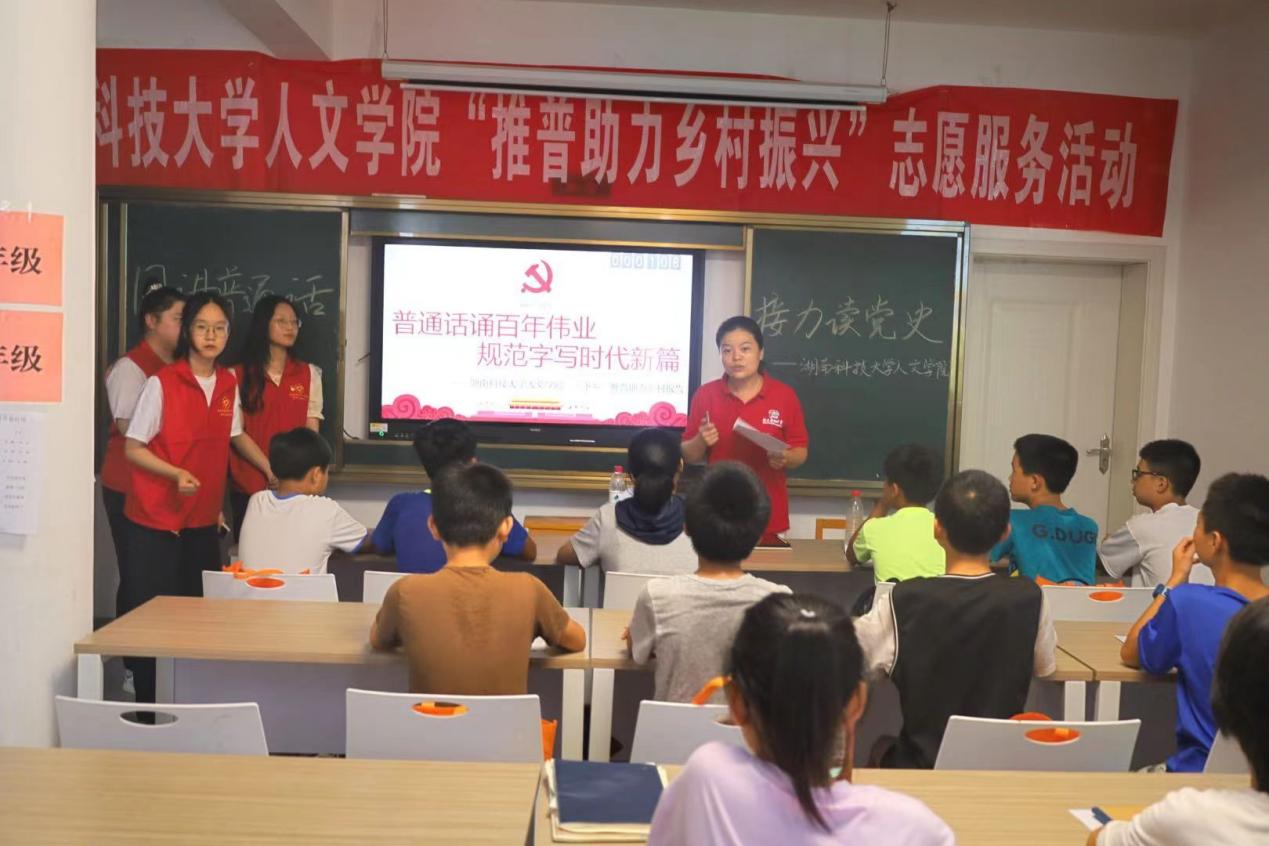 为响应国家推普助力乡村振兴号召,促进乡村经济文化发展,同时宣讲红色党史,传承红色基因,喜迎二十大。7月11日,KY.COMKY.COM暑期“三下乡”社会实践团队走进株洲市攸县石羊塘镇儿童之家开展“普通话诵百年伟业 规范字写时代新篇”的主题活动。
