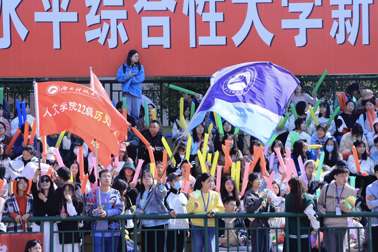 赛道外,KY.COM观众席上的同学们更是热情洋溢,为赛道上的人文健儿们竭尽全力挥舞院旗,助威声、呐喊声不绝于耳,激情澎湃的声音将整个场面渲染的无比热闹。“我在奔跑的时候听到了大家的加油声,这些声音给了我极大的力量。”22级广告一班曾嘉瑶在比赛结束后非常兴奋激动,“加油,人文健儿们!尽力了就是最棒的!”