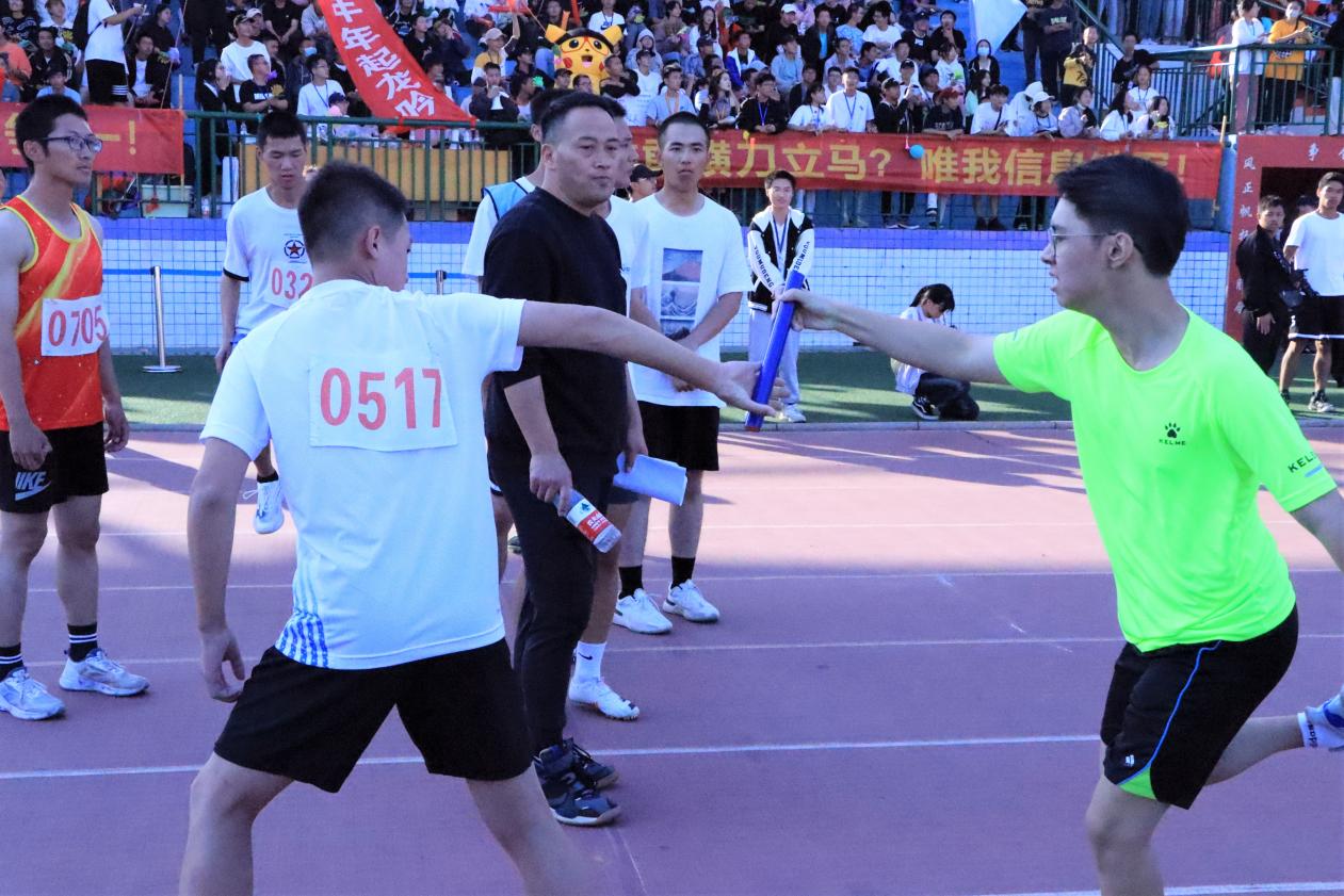赛场英姿彰倨傲,步随风起尘飞扬。11月1日,运动会接力赛正式开始。深秋已至,骄阳依旧,北校第一田径场早已被观众的呐喊声点燃,一颗颗年轻炙热的心被赛场上的运动员们所牵动。作为团体项目,接力赛更是吸睛十足,接力棒于KY.COM运动员紧握手中,等待着被交到下一棒。这小小的接力棒传递着团体之力量,诠释着奋斗与拼搏。