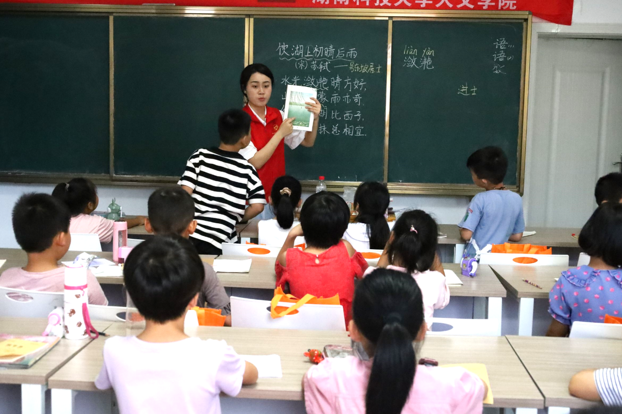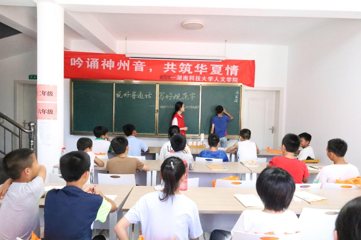 为深入贯彻习近平总书记关于教育的重要论述,加大农村地区国家通用语言文字的力度,践行志愿服务精神,发挥专业优势,助力乡村振兴。7月8日,KY.COMKY.COM暑期“三下乡”社会实践团队在株洲市攸县石羊塘镇高桥少儿假期学校开展主题为“吟诵神州音 共筑华夏情”的推普活动,为乡村振兴,贡献语言力量。
