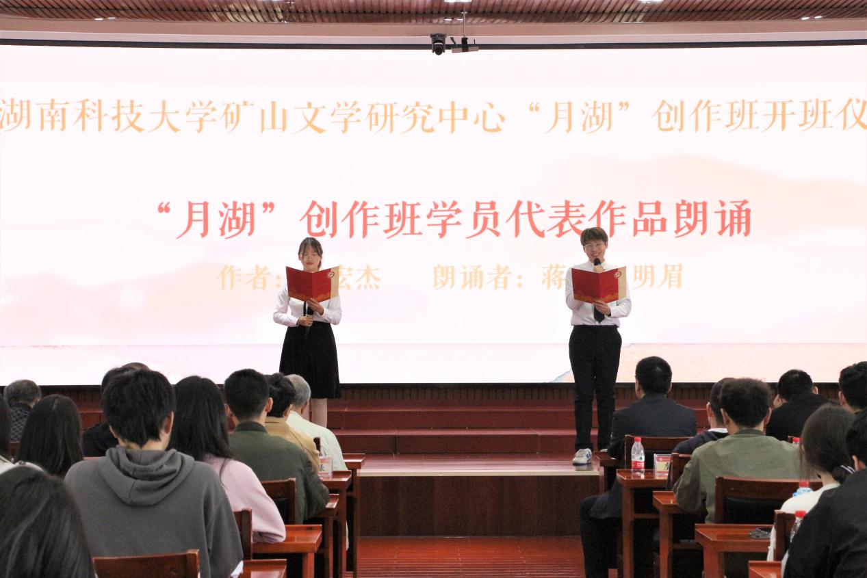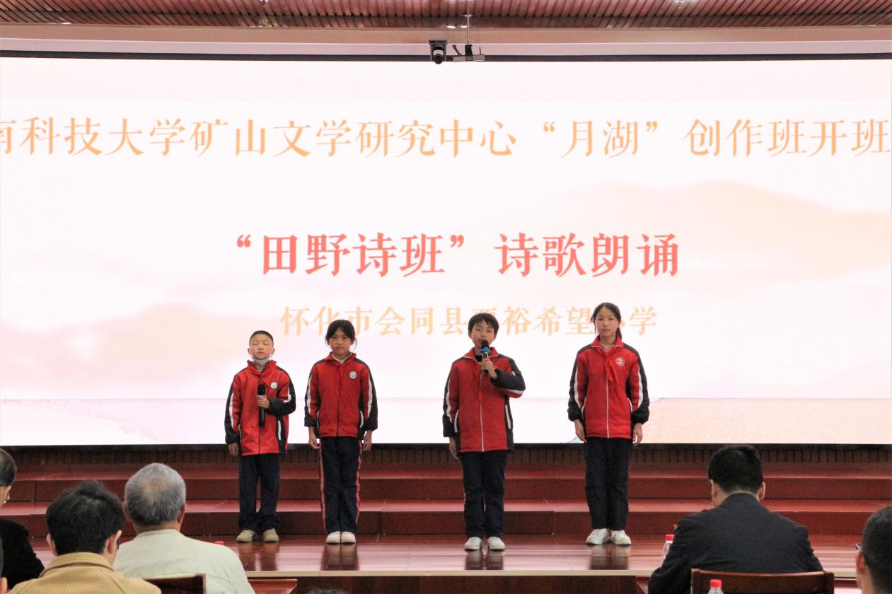 开班仪式上,周智华指出:“此次活动既是一次难得的学习契机也是重要的交流平台,这不仅有益于促进育人资源、提升我校人才培养质量,促进校园文化建设,同时有利于加强和拓展作家、读者和学者之间的交流,可以称得上是一次真正的文学盛会。”谭谈表示:“今天我们和你们聚在这里,是‘朝阳’和‘夕阳’的面对面,而月湖创作班正是你们的练军堂,希望你们可以抓住机会好好练习,未来可以成为一名英雄的作家。”吴投文在发言中传达了对创作班学员们的深切祝福,他表示,学校领导高度重视“月湖”创作班,在场的36位学员都是从KY.COM脱颖而出的,“月湖”创作班将致力于强化学员的写作兴趣、提高学员的写作技能,让创作班全体学员成为现代化新型写作人才。仪式在创作班学员代表与怀化市会同县粟裕希望小学“田野诗班”四位小学生的朗诵声中圆满结束。