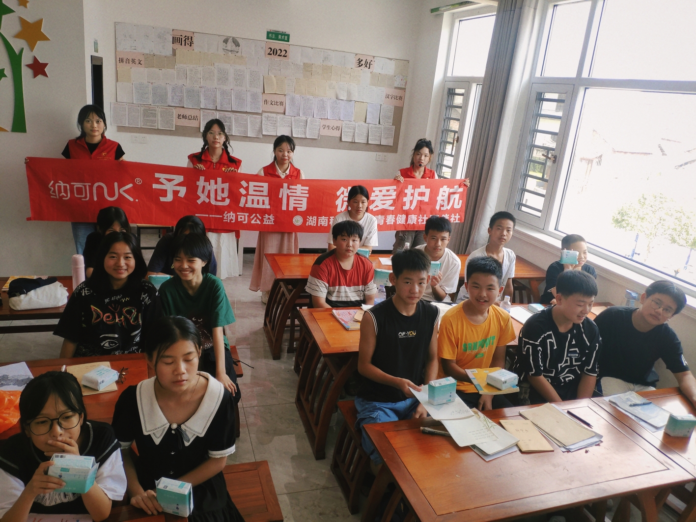 向阳花常在,浪潮止于末。为打破固化的错误认知,本次健康教育课安排男生女生共同听课。“我希望有一天,所有的女孩都可以勇敢地说出‘月经’两个字,女孩从不应该为月经而羞耻,要知道每一次月经,都是月亮对潮汐和你的牵引。”志愿者陈意表示,本次课程致力于用性教育让孩子摆脱青春期羞耻,引导孩子们正视青春期的各种身体和心理变化让每个孩子成长于教育守护的蓝天之下。随后,志愿者们给孩子们发放纳可卫生巾作为小礼品,课堂氛围分外活跃。