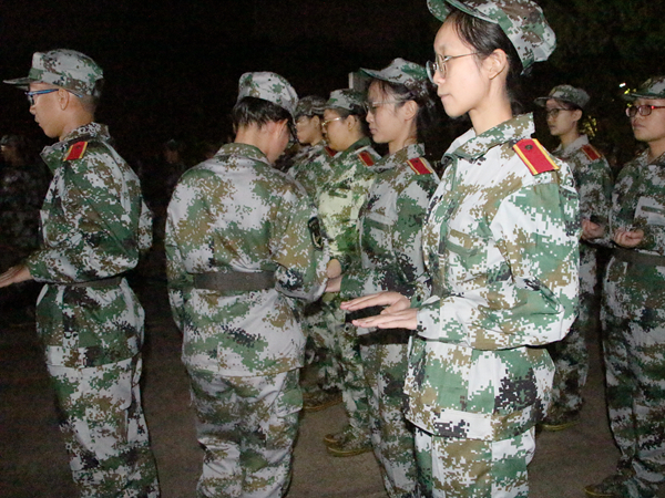 在助班的带领下,新生们早早地来到训练场地整理好队伍,等待教官的到来。晚上7时,各排教官准时来到训练场地。集中完毕后,连长王阳首先作了自我介绍:“我姓王,单名阳,你们看到太阳的时候就是训练的时候。”他指出近期新生中存在的自由散漫等问题并提出五点要求:时刻注意军容军纪,请假时严格遵循程序,弘扬集体主义精神,能够吃苦耐劳,注重礼貌礼节。“当你们穿上军装,你们就不再是学生,而且中华人民共和国的一名预备军人,要用军队的要求来严格要求自己!”,王阳简述了自身在部队中学习到的精神,并以此激励新生不畏艰难,“军队的精神就是,没有困难克服不了,没有敌人战胜不了,没有任务完成不了!”在简单提问以确保新生熟记纪律后,王阳再次强调了请假问题,并补充说明军训不是为了折腾学生,而是为了考验受训者的毅力和耐心,锤炼出军人般的意志,最终将军训中学习到的品质落实到生活中。
