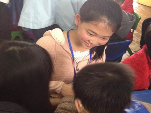 “聆湘楼语训六班的特殊儿童们还像以前那么活泼,那么可爱。”志愿团副团长孙杰不止一次到特殊学校陪伴孩子们,每一次来,他都会被她们简单的关心感动。语训部的特殊儿童只会简单的口语,但是他们其实非常渴望与外界沟通。志愿者大哥哥大姐姐们站在窗外,就能让他们高兴起来。志愿者刘玮感慨道:“他们实在太可爱了!尽管身体有残缺之处,但是这些孩子的心灵都很美好。我当志愿者,就是想给他们关爱与呵护。”