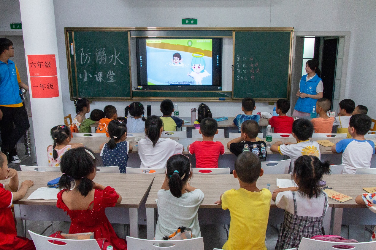 在石羊塘镇儿童之家暑期课堂,志愿者以国内近期多起的中小学生溺水事件为例,多条触目惊心的溺水视频新闻向同学们直观地阐述了私自下水游泳的危险性,并邀请同学分享感受。“不能私自进入江河游泳,要在家人陪同下去正规游泳馆,如果小伙伴不幸溺水,也不要私自下河救助,要去找大人寻求帮助。”谢锦豪说道。