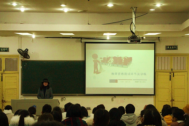12月21日下午15时,我院于十教附一303举办关于“教师资格面试环节及训练”的培训。本次培训由胡铁强教授主持,湖南省教师资格面试考官培训老师胡天月应邀作为本次培训的主讲人,为即将面临2019年1月教师资格面试的同学们进行相关指导。