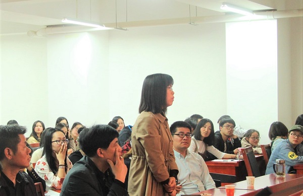 讲座即将进入尾声,余霞博士就即使回归儒道传统是否也应向西方优秀文化学习的问题向张教授请教。张教授就此问表达了自己的观点,“西方的自由主义也并不是主张绝对的自由,我们应该回归传统,同时又吸收西方文化中的优质元素。”