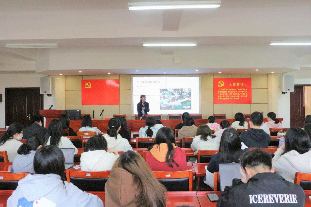 “学生应做好实习和考研计划,学会利用老师或校友资源,主动积极寻求实习机会。”针对考编现状,她指出,如今师范类院校分数线不断升高,考编难度也不断加大,学生要在面试前做好充分的准备。“凡有行动,必有凭借。凡有作为,必有地位。”她用学者刻苦研究《红楼梦》并凭此出版书籍的事例提醒学生要在某一方面深入钻研,并能有所建树。谈及诗歌教学研究,她以徐志摩的《再别康桥》为例子,向同学们详细讲解了不同押韵类型,并解释这些押韵类型在作者情感变化方面的作用,以此引申到语法、语义的变异,诗歌层次及新诗歌写作教学。